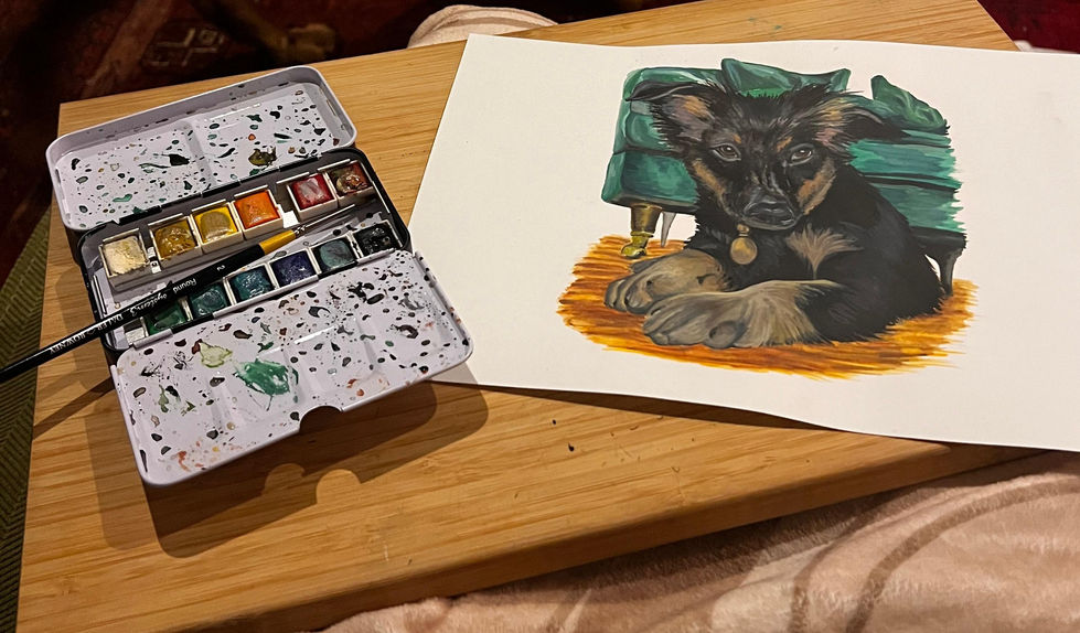 This A4 acrylic painting was created as a Christmas gift to celebrate the arrival of a new puppy. Commissioned as a personal keepsake, the artwork captures the early charm and personality of the dog during that special, fleeting stage of puppyhood.
